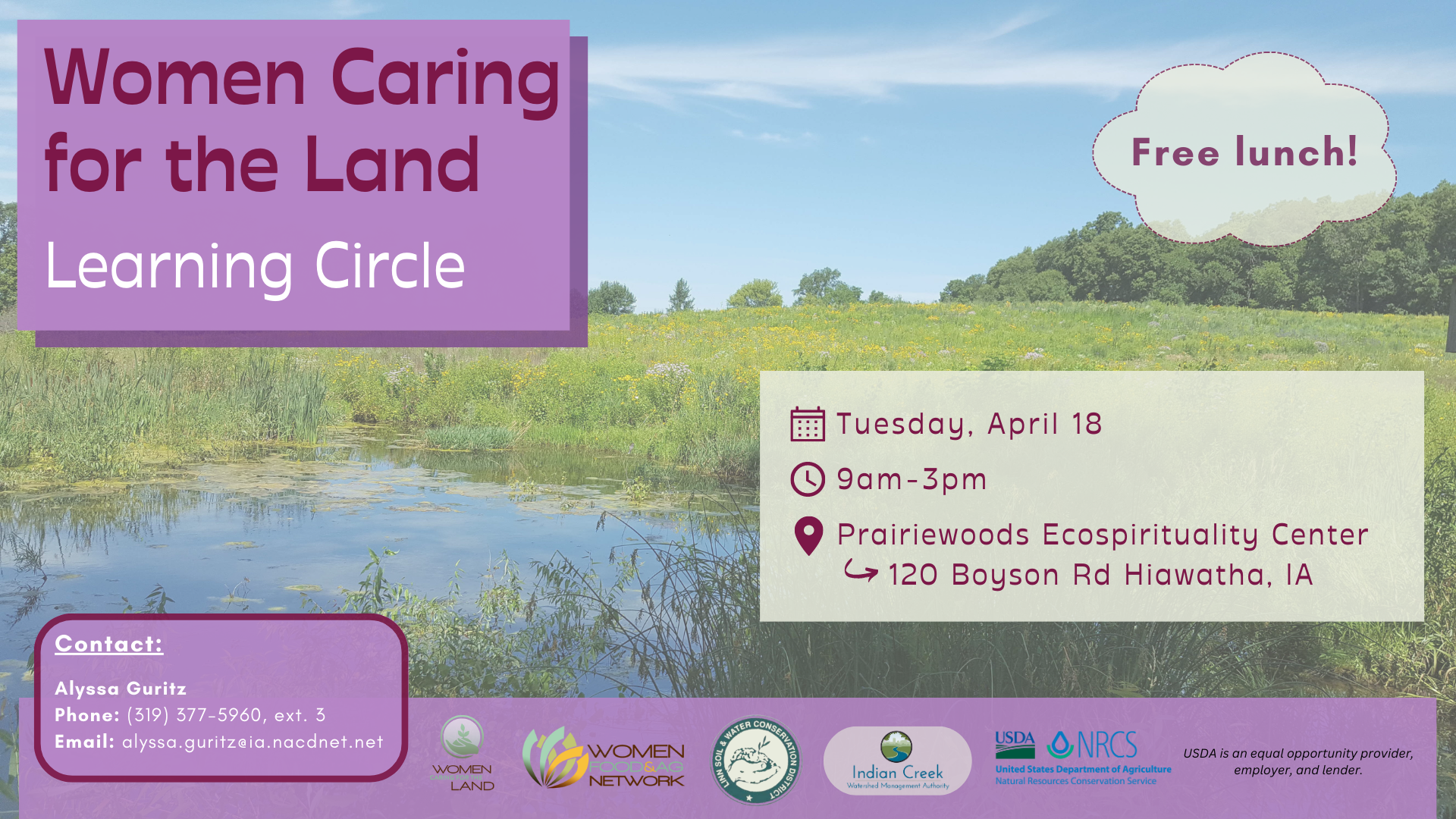 This event is free and lunch is provided, though pre-registration is required. If you have questions, please contact Alyssa Guritz at alyssa.guritz@ia.nacdnet.net or call (319)-377-5960, extension 3.