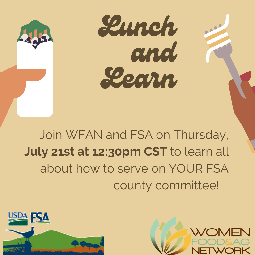 Did you know you can help ensure fair and equitable administration of FSA programs? County Committees play a critical role in the delivery and administration of farm programs in your community. We invite Iowa women and non-binary folks to join us for a discussion about how to run in the upcoming Farm Service Agency County Committee Elections. The event will feature Iowa women who currently serve on their local Committees. They will share their stories about what it is like to run for this office and serve on a County Committee. We will also hear from the State Executive Director and long-time WFAN friend, Matt Russell, and Public Affairs Specialist, Amanda Hartman, about how to become involved,